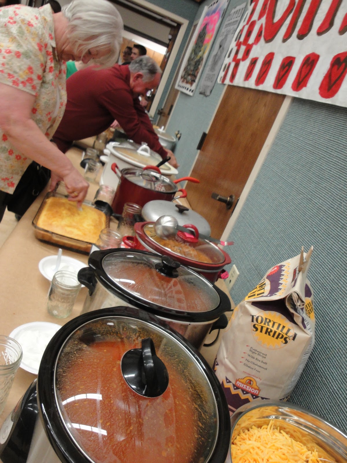 I love the chili cook-off theme with posters. How fun! I'll have to keep that one in mind for future ward parties. Very cute.