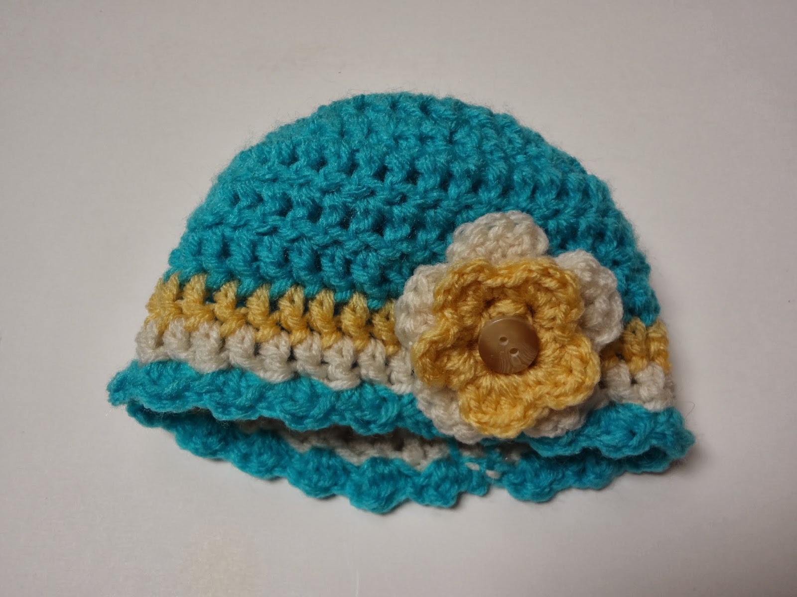 here is a baby hat with a flower on it. I've been trying out new patterns from the internet. Who needs to buy a book, ha ha :)